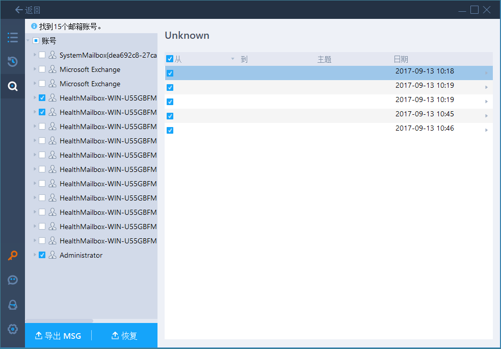 这款工具可以恢复 Exchange 服务器邮箱、电子邮件和其他关键数据。用户可以自定义恢复方式,选择通过将数据恢复到当前的数据库或新的数据库以及以 .msg 格式储存都可以。