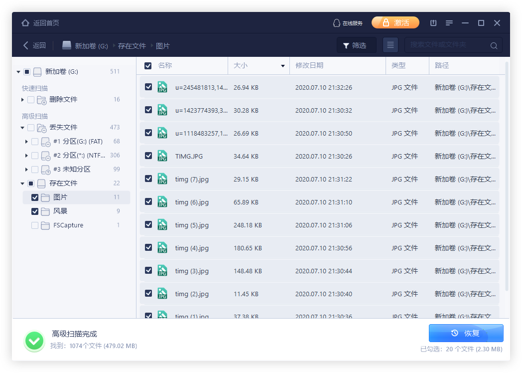 支持修复硬盘、SD卡、记忆卡或其他储存设备上损坏的 JPG/JPEG 照片。
